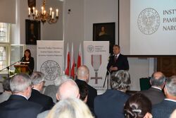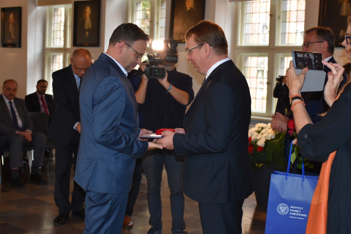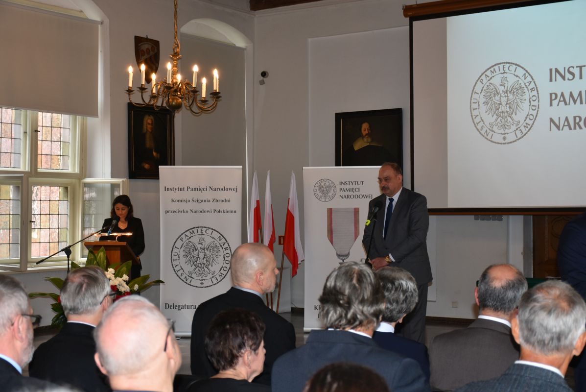 W imieniu Prezydenta Rzeczypospolitej Polskiej Andrzeja Dudy odznaczenia wręczył prezes Instytutu Pamięci Narodowej dr Jarosław Szarek.