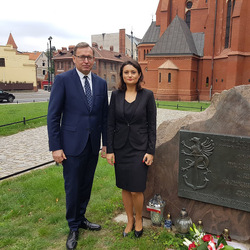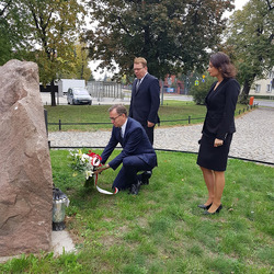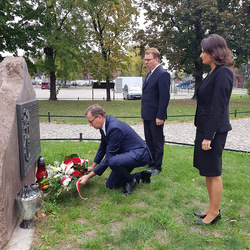 Wizytę w Toruniu, w przeddzień 80. rocznicy powstania Polskiego Państwa Podziemnego, prezes IPN rozpoczął w miejscu symbolicznym – na placu św. Katarzyny. W stojącym tam kościele garnizonowym znajduje się jedno z pierwszych upamiętnień dedykowanych gen. Elżbiecie Zawackiej. Z kolei tuż przy świątyni mieści się jedno z najważniejszych upamiętnień Polskiego Państwa Podziemnego w całym woj. kujawsko-pomorskim. Pod tablicą dedykowaną komendantom ZWZ-AK w Okręgu Pomorze prezes IPN złożył kwiaty. Następnie dr Jarosław Szarek złożył kwiaty pod pomnikiem gen. Józefa Hallera, jednego z Ojców Niepodległości.