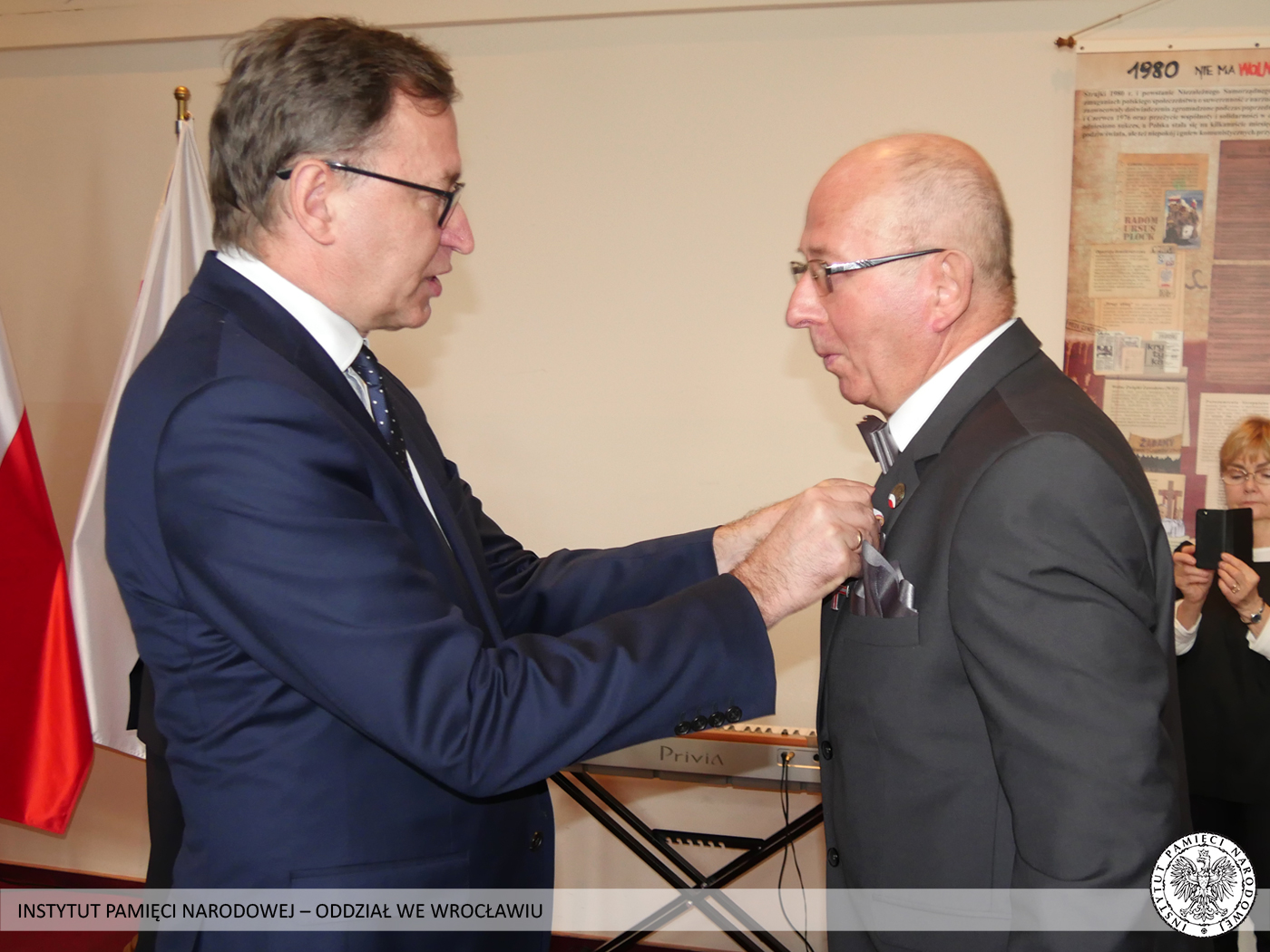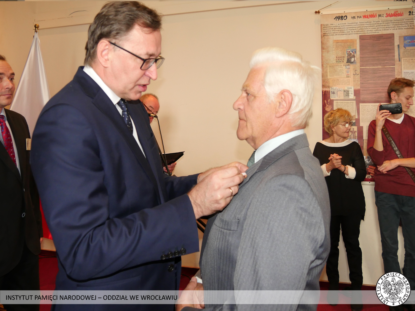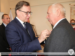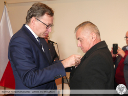 Krzyż Wolności i Solidarności to odznaczenie przyznawane przez Prezydenta RP na wniosek Prezesa Instytutu Pamięci Narodowej za działalność podziemną na rzecz niepodległego Państwa Polskiego. Odznaczeni nie wahali się narażać własnego zdrowia i życia, abyśmy mogli dzisiaj żyć i pracować w wolnej i demokratycznej Polsce. Tych skromnych bohaterów sprzed kilku dekad Prezes Instytutu Pamięci Narodowej dr Jarosław Szarek udekorował Krzyżami Wolności i Solidarności. Całą uroczystość poprowadził dyrektor Oddziału IPN we Wrocławiu dr Andrzej Drogoń.