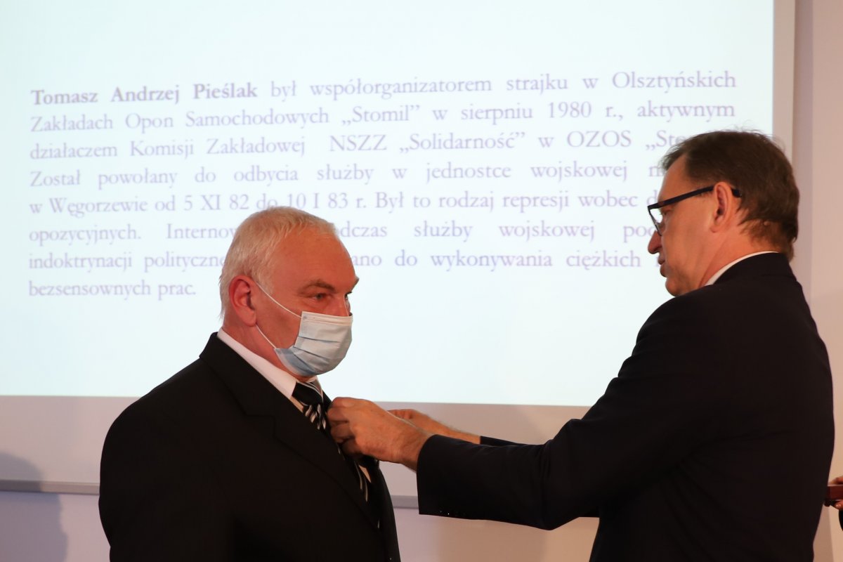 Chciałbym, żeby te Krzyże Wolności i Solidarności były również symboliczną nagrodą dla Waszych rodzin, za czas strachu, niepewności, a nieraz także samotności i społecznego odrzucenia. Są dziś w Waszym gronie zwykli ludzie: ówcześni robotnicy, rolnicy, i pracownicy samorządów. To pokazuje, że pragnienie życia w wolnej Ojczyźnie było pragnieniem powszechnym. A jednak nie wszystkim wystarczało odwagi, by sprzeciwić się zbrodniczemu systemowi, który jeszcze w trakcie trwania swej agonii nie wahał się zabijać przeciwników politycznych. Dlatego jesteście ludźmi wyjątkowymi, którym w ten sposób wyrażamy dziś naszą wdzięczność.