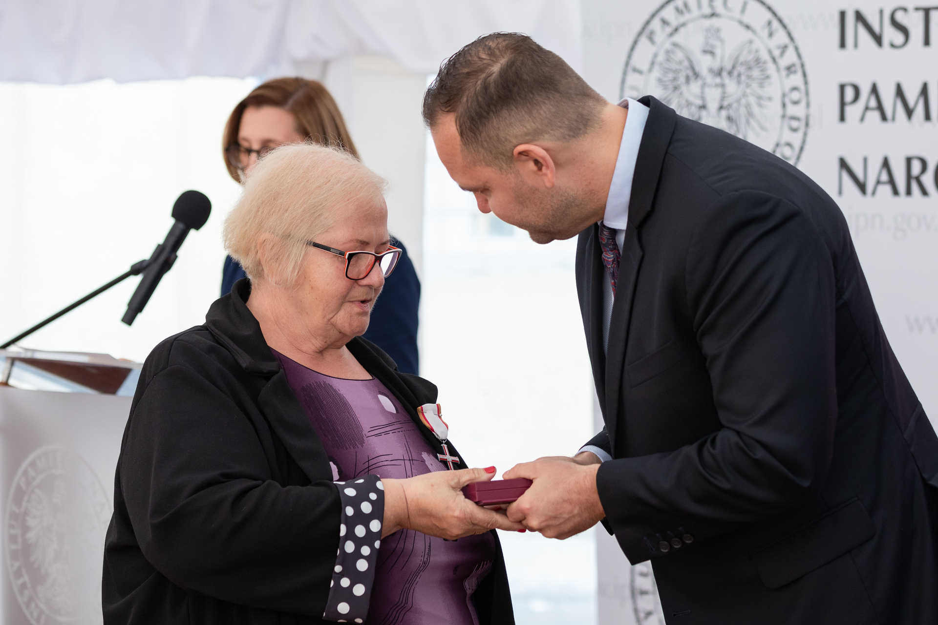 W imieniu Prezydenta RP Andrzeja Dudy odznaczenia wręczył Prezes IPN dr Karol Nawrocki.